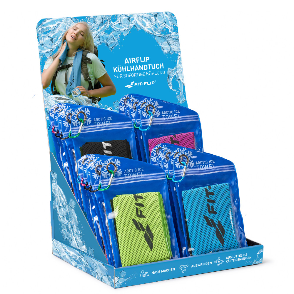 Un rafraîchissement immédiat est toujours une bénédiction pendant le sport ou les journées chaudes. L'effet rafraîchissant peut être activé en quelques étapes seulement : Mouiller la serviette rafraîchissante, l'essorer, la secouer vigoureusement 1 à 2 fois et ta serviette Airflip Cooling Towel est déjà rafraîchissante pendant 2 heures. Le meilleur : l'effet rafraîchissant fonctionne toujours et partout et peut être activé sans problème en le secouant à nouveau.